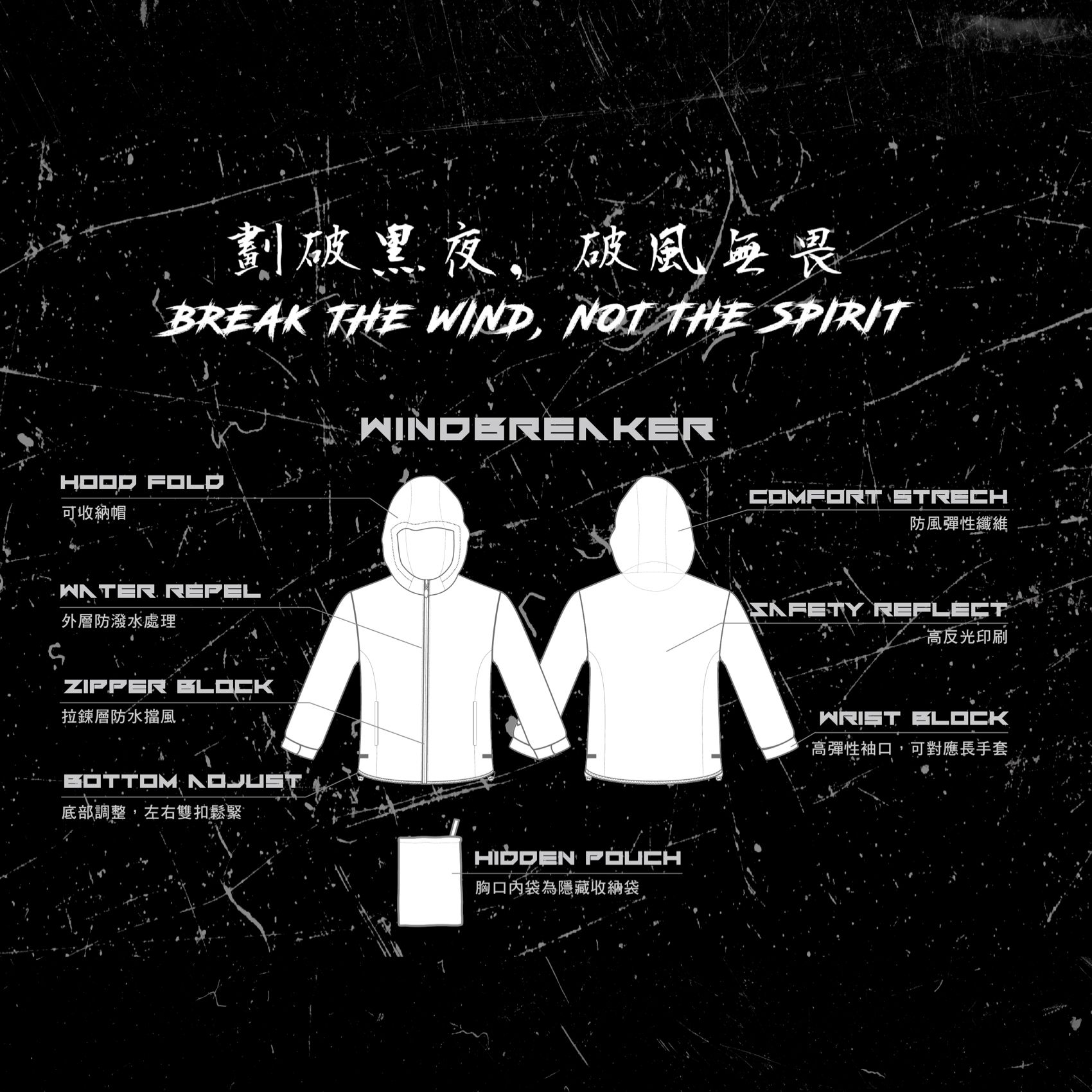 - 防潑水+TPU內膜+防水條,防輕雨功能增強